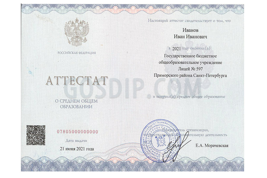 | Аттестат за 11 класс 2021-2025 гг.  (новейший), Гознак |