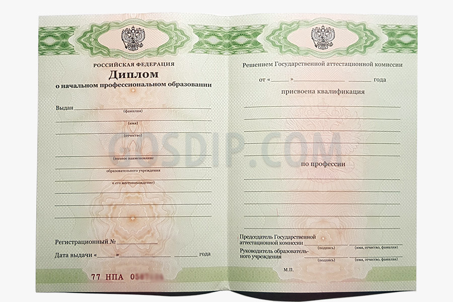 | Диплом ПТУ о начальном образовании 2011-2013 гг, Гознак |