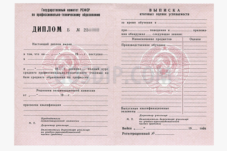 | Диплом ПТУ о начальном образовании СССР до 1994 года, Гознак |